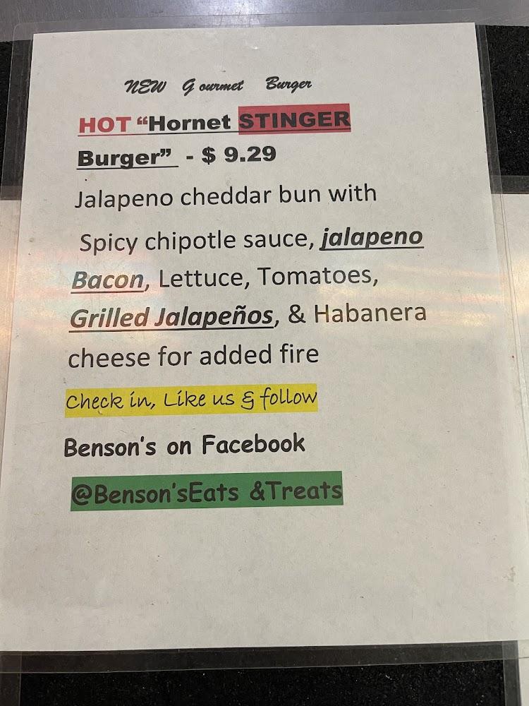 The menu at Bensons Eats & Treats is extensive and diverse. Star dishes include their signature burgers, loaded with flavor and juiciness. The culinary selection ranges from tacos to hearty sandwiches. Desirable sides like curly fries and onion rings complement every meal. Sweet tooth? Don’t miss their ice cream treats, from sundaes to shakes, all made with genuine ingredients. Kids will love the dedicated menu, ensuring all family members have delicious choices. Each dish offers a comforting taste of classic American cuisine that keeps diners coming back for more.